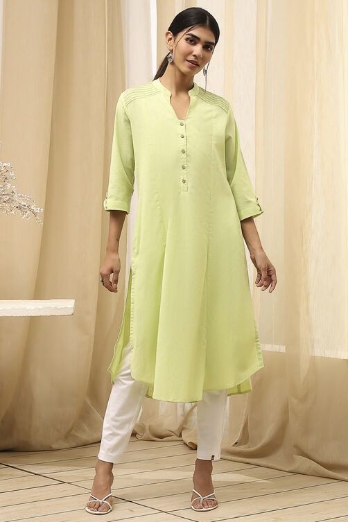 Stay cool and stylish in this light green straight-fit kurta made from a soft cotton blend.